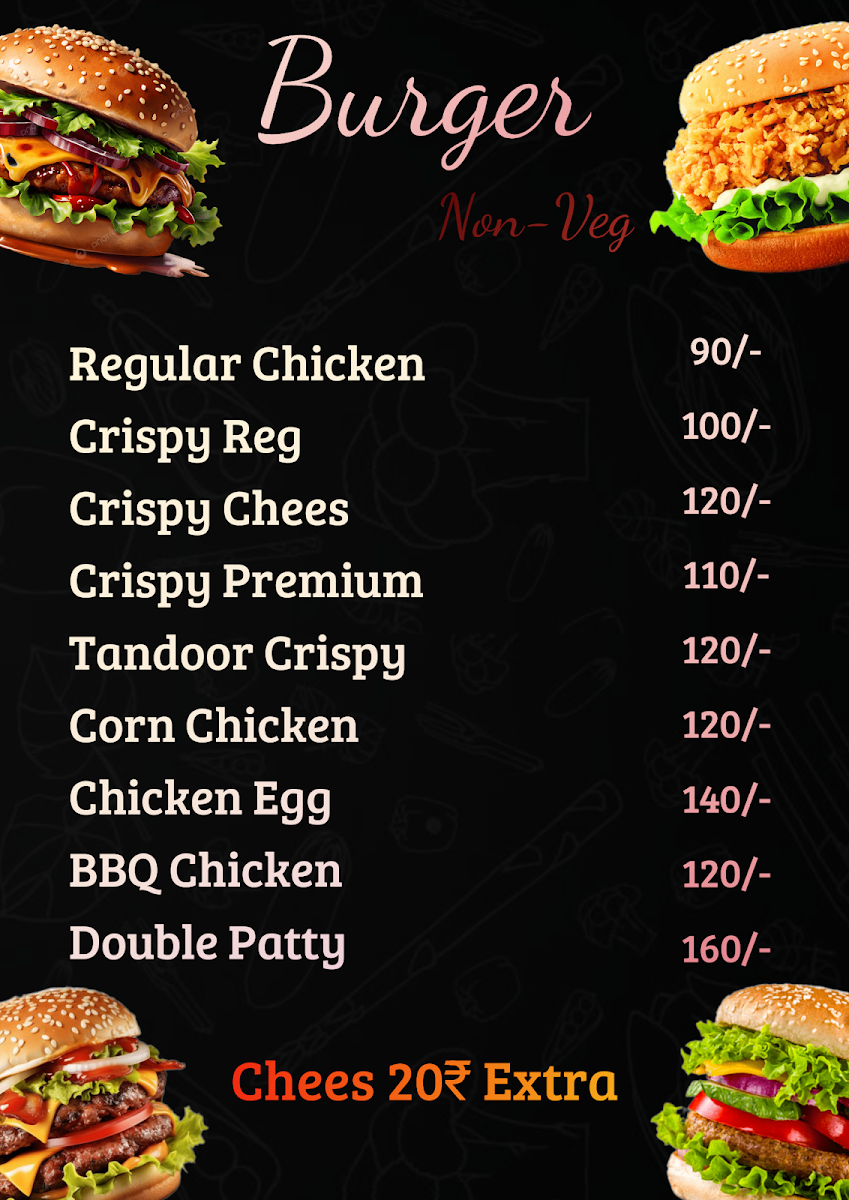 - Burgers: Try their Crispy Chicken or BBQ Chicken, with prices starting at an affordable ₹90.